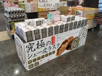 お土産販売エリアの売り場一画を総合的にプロデュース。 「究極のシュー皮ラスク」では関ドライブイン様のオリジナルデザインをご採用いただきました。